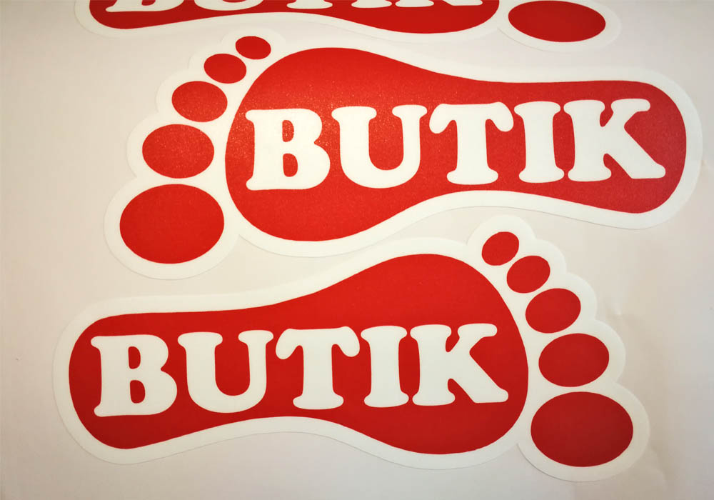 Naklejki wycięte po obrysie w dowolny kształt i laminowane grubym